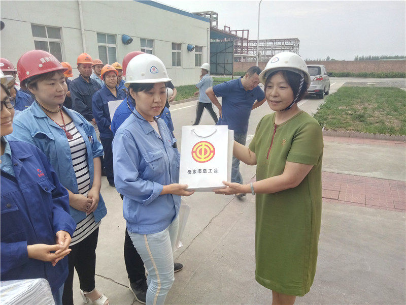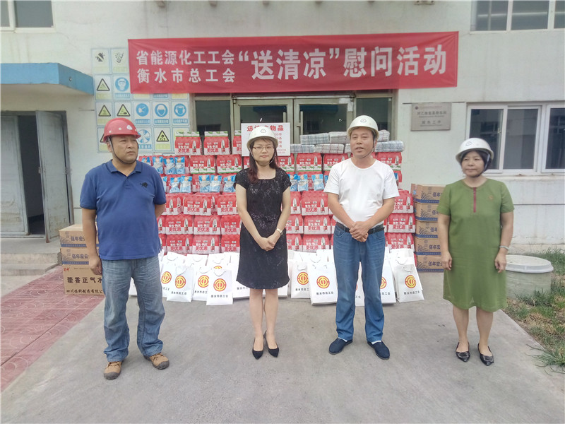 8月22日,衡水市總工會黨組成員、經(jīng)審委員會主任劉莉,經(jīng)審辦主任楊新宇代表省能源化工工會、市總工會到冀衡集團(tuán)開展“送清涼”慰問活動,集團(tuán)工會主席韓紅喜接待了慰問組成員一行,在慰問活動現(xiàn)場,上級工會領(lǐng)導(dǎo)對我集團(tuán)職工戰(zhàn)高溫、斗酷暑,不畏困難的精神表達(dá)了敬意,并為大家送上礦泉水、毛巾、冰糖、藿香正氣水等防暑降溫慰問品,讓高溫下堅(jiān)持生產(chǎn)的職工們親身感受到了上級工會組織的關(guān)愛,大家表示一定要努力工作,為企業(yè)發(fā)展做出更大的貢獻(xiàn)。