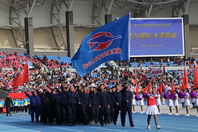 開幕式上,隨著表演節目的開始和花車巡展,衡水市第四屆運動會的序幕徐徐拉開。13輛艷麗奪目的花車沿衡水奧體中心跑道繞場巡展,集中展現了本地、本單位特色主題和各自產品及地域風采,為廣大市民帶來了一場視覺盛宴。伴隨著激昂的《運動員進行曲》,各方隊依次入場,冀衡集團代表隊高舉廠旗,邁著整齊的步伐進入會場,經過主席臺時,揮手致意整齊劃一,口號聲氣勢恢宏,展現了冀衡集團積極奮進、團結協作的精神風貌,全場觀眾喝彩聲不斷。