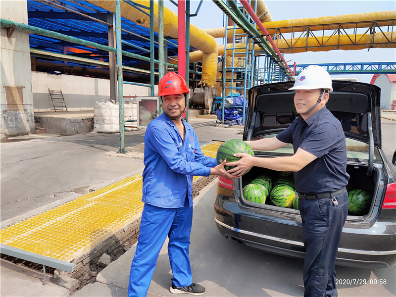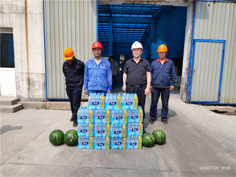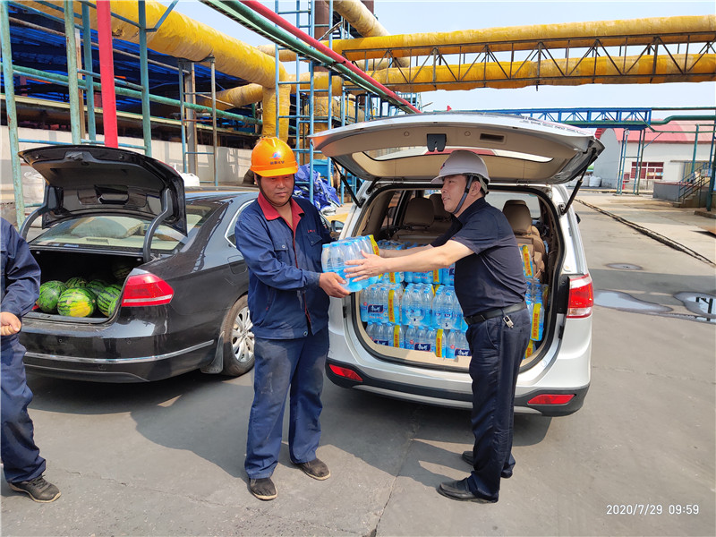 進(jìn)入三伏天后,一線職工的工作和生活情況時刻牽動著集團(tuán)領(lǐng)導(dǎo)的心,7月29日上午,集團(tuán)工會主席韓紅喜一行來到我公司三車間熱解崗位,為工作在一線的職工送去礦泉水、西瓜等解暑物品,韓主席同時囑咐大家在保證做好安全生產(chǎn)工作的同時,一定要照顧好自己的身體,注意勞逸結(jié)合和做好防暑工作,同時囑咐現(xiàn)場的管理人員做好職工后勤保障工作,切實保護(hù)好高溫天氣下廣大職工的身體健康。